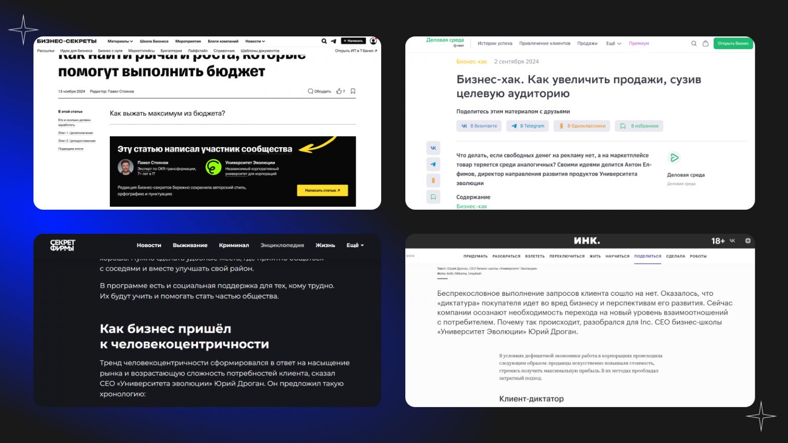 Как команда Университета Эволюции стала видимой в медиаполе и консалтинге